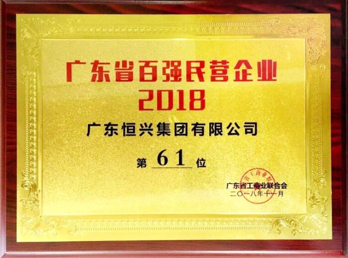 恒兴集团入选2018广东省百强民营企业