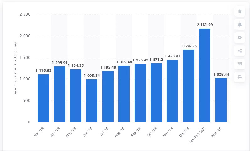 2020年第一季度中国海产品进口额达228亿元!同比下降6.2%!