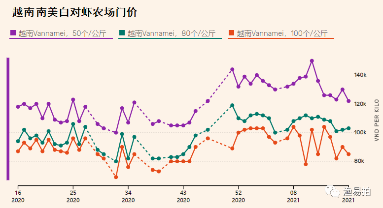 越南南美白对虾17周价格再次下降,黑虎虾价格持续回升