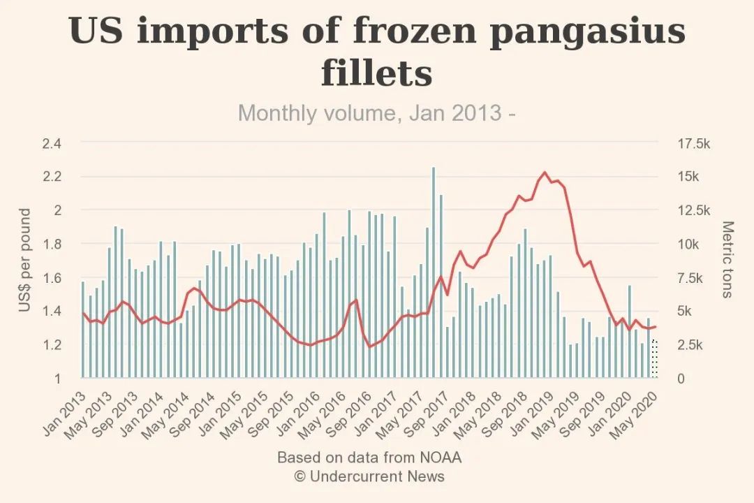 五月份,美国巴沙鱼进口量下降40%