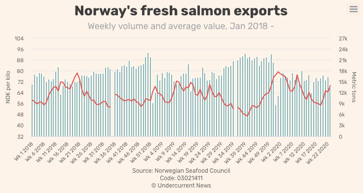 挪威三文鱼涨价后,出口数量下降