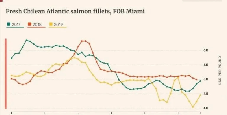智利三文鱼对华出口价格上涨0.29美元!美国,巴西现货价格下跌!