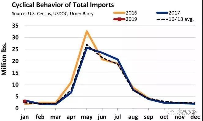 各国雪蟹进口量较去年大幅增长,高于3年平均水平