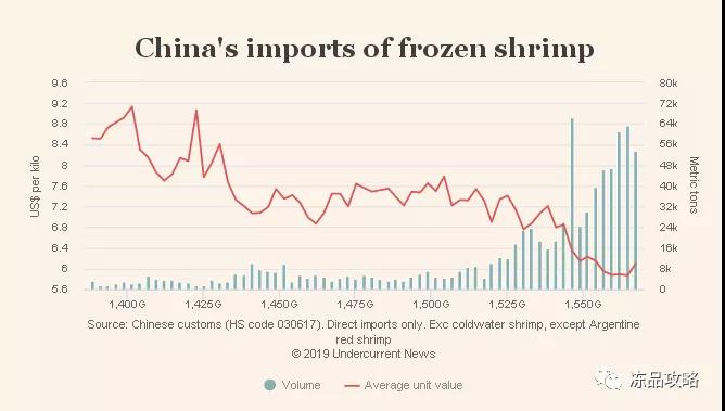 9月冷冻虾进口同比8月下降10000吨,缺货状况或将持续,价格一路高涨