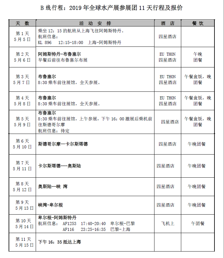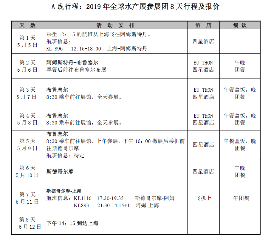 2019年全球水产品展览会团组行程重磅发布