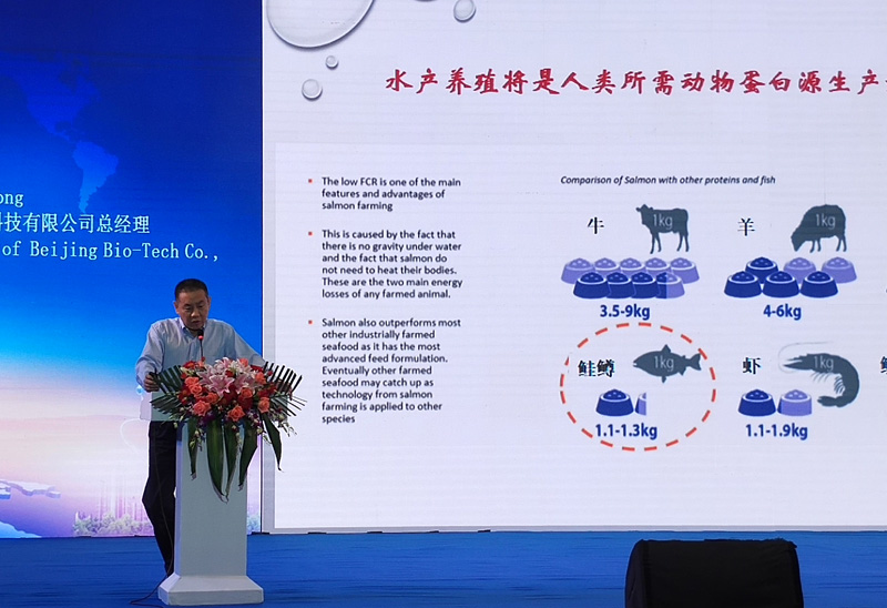 北京北欧玛生物科技有限公司董事长郑维中应邀做了《全球三文鱼市场现状、机遇与挑战》主题报告。他分析了全球鲑鳟鱼市场发展状况。鲑鳟鱼生产面临着环境压力、病害、种群侵害、市场竞争等方面的挑战。他预测,未来三文鱼的主要市场将是新兴市场。三文鱼在中国市场刚刚起步,发展空间依然巨大。因此,开发更多适合中国消费者饮食习惯的菜品是未来三文鱼市场扩大的主要途径。