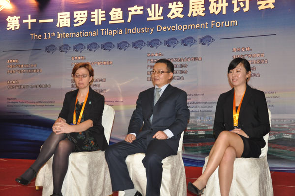 我会常务副会长崔和主持了开幕式,农业部渔业渔政管理局渔情监测与市场加工处袁晓初处长,广西壮族自治区水产畜牧兽医局王海吟副局长,罗非鱼产业技术创新战略联盟理事长、广西百洋水产集团股份有限公司董事长作开幕式讲话。本届会议以“促进产业升级转型,营造差异化竞争格局”为主题展开,由国内外权威专家从贸易形势、市场潜力、罗非鱼可持续养殖模式、罗非鱼副产物高值化利用、可持续发展、内销策略及信息化管理等方面进行了报告分析。