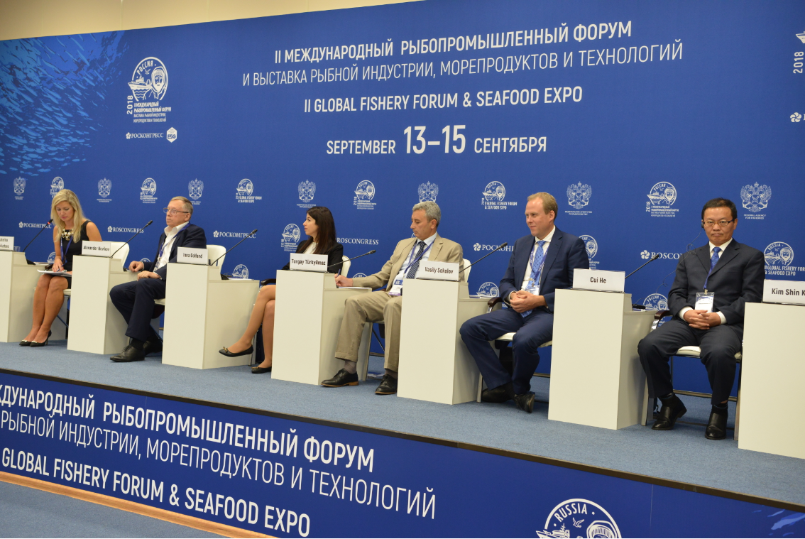 第二届全球渔业论坛主题为"全球渔业活动2050:资源、市场、技术"。会议主论坛邀请到俄罗斯农业部副部长、法罗群岛渔业部长、丹麦王国驻俄罗斯顾问、国际粮农组织渔业和水产养殖政策和资源司副司长, ICES秘书长,温哥华海事研究所代表,摩洛哥王国农业、海洋捕鱼、农村发展、内部水体和林业部长以及AO联合造船公司总裁拉赫莫诺夫等参加。