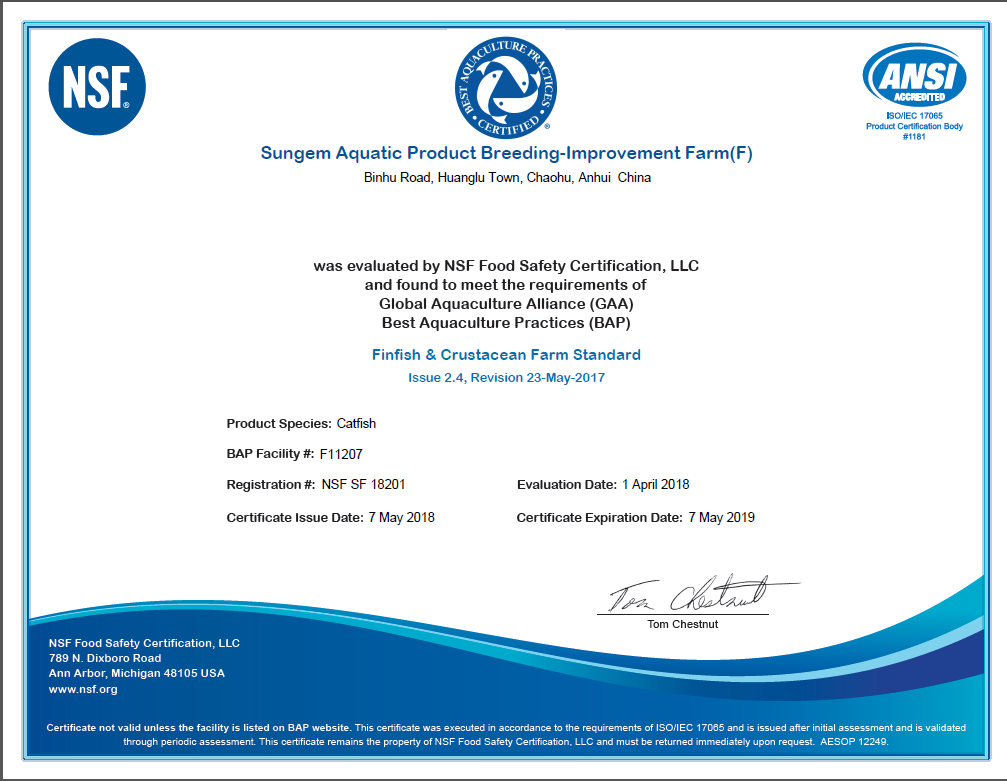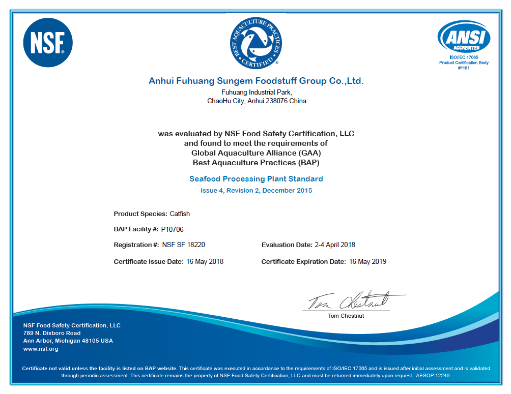 安徽富煌三珍食品集团通过BAP国际水产认证