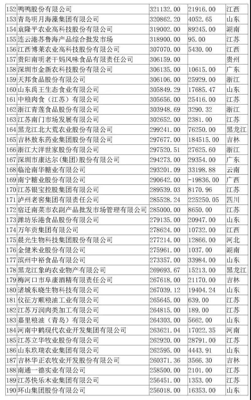 《2019农业产业化龙头企业500强排行榜》正式公布
