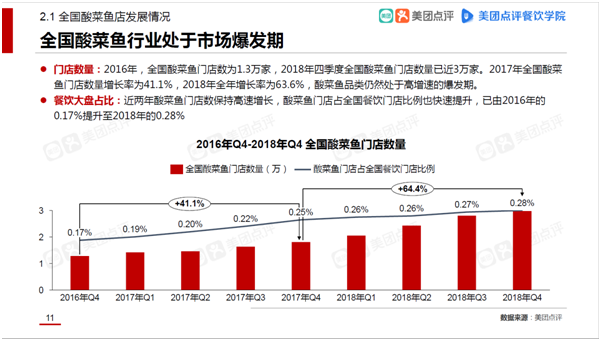 近几年,中国餐饮业的品类流行风依次刮过潮汕牛肉火锅、小龙虾、串串香等一系列细分品类蹿红的风,而近两年最火爆的非酸菜鱼莫属。从北到南、大街小巷一夜间都立起了酸菜鱼的招牌,在外卖领域,酸菜鱼的单量喜人。如火如荼发展着的酸菜鱼究竟有哪些商机?