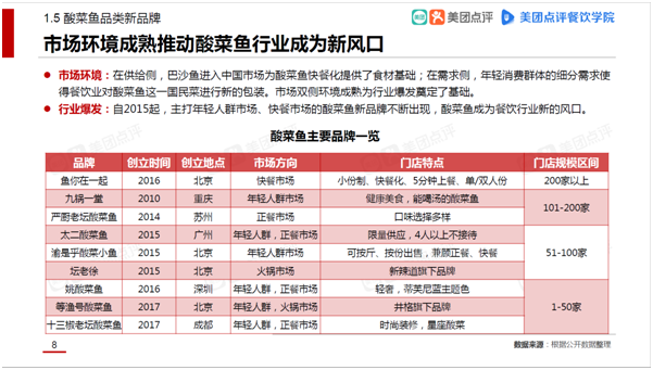 自2015起,主打年轻人群市场酸菜鱼新品牌不断出现,酸菜鱼成为餐饮行业新的风口,也备受资本的青睐。