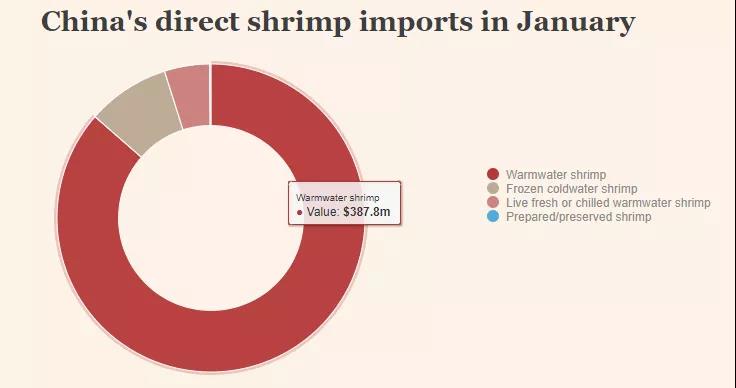 据海关提供的最新数据,今年一月份,中国正关进口虾类产品71,227吨,价值4.49亿美元。