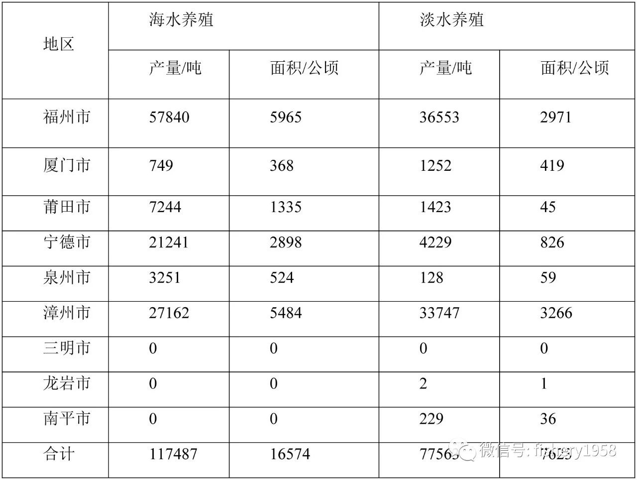 表1 2016年福建各地区对虾海、淡水养殖产量和面积