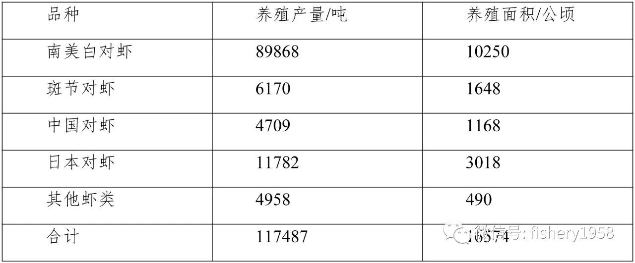 表2 2016年福建省各品种对虾海水养殖产量和面积