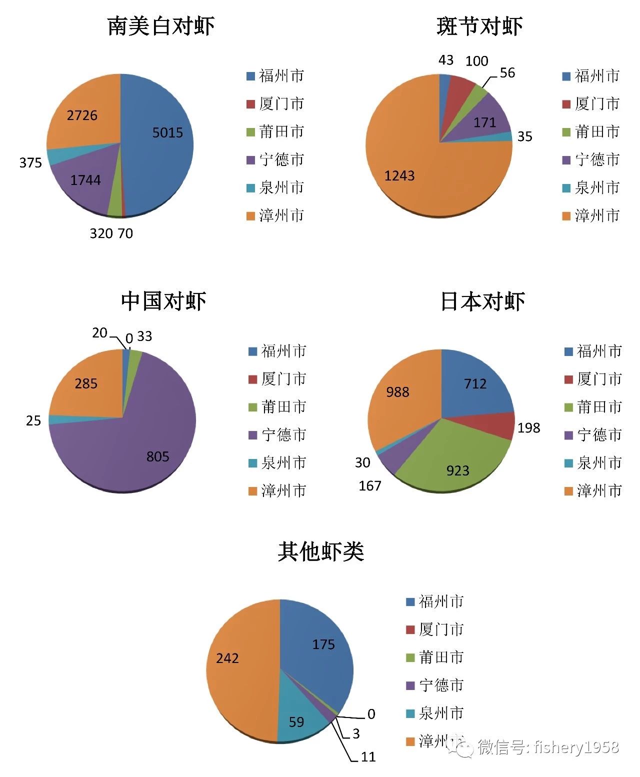 图1 2016年福建各地区对虾海水养殖产量(单位:吨)