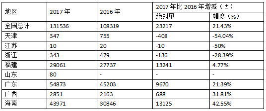 表2 2017年福建省石斑鱼主产区养殖产量情况(单位:吨)