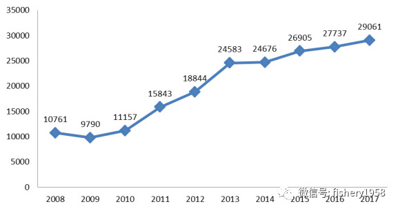 图2 2008年~2017年福建省石斑鱼养殖产量(单位/吨)