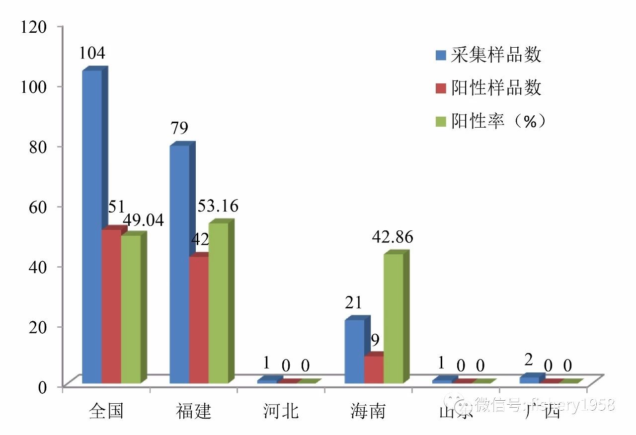 石斑鱼常见疫病主要有病毒性神经坏死病、虹彩病毒病、弧菌病、刺激隐核虫病等。其中病毒性神经坏死病对石斑鱼危害最为严重,在石斑鱼的苗种期发病率达95%以上,发病死亡率达70%以上,最高达100%。石斑鱼病毒性神经坏死病2016年起就列入了《国家水生动物疫病监测计划》,自此,福建省就不断做好石斑鱼病毒性神经坏死病的监测和综合防控工作(图4、图5)。