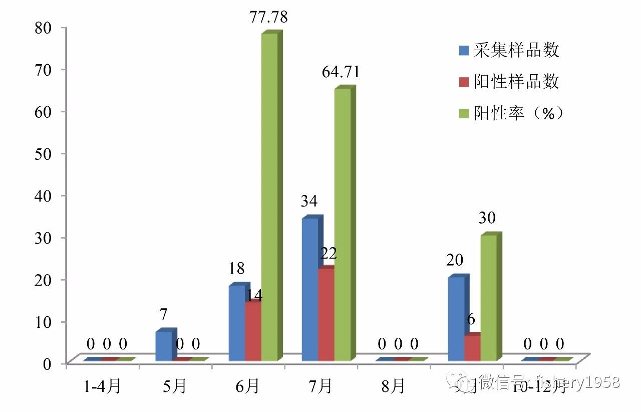 图5 2017年福建省石斑鱼病毒性神经坏死病各月份监测情况