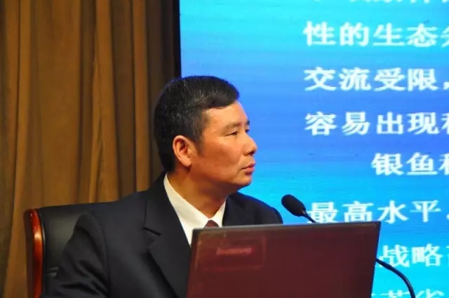 中国科学院水生生物研究所研究员刘家寿作了“大水面生态渔业与水生生物资源合理利用及保护”的报告,阐述了实施大水面生态渔业的必要性和紧迫性。随着大水面污染的日益严重,湖泊水库广泛采用的投饵养殖、施肥养殖以及“三网”(网箱、网栏和网围)养殖将被迫退出,传统的大水面养殖方式被迫面临转型。介绍了湖泊生态渔业的定量管理策略:湖泊水产类群生产潜力评估、湖泊渔业多种群管理-营养网络模型与捕捞量控制,通过食鱼性鱼类的生物操纵、名优水产品的适度放养、小型鱼类和底层扰动性鱼类的控制达到均衡利用水生生物资源、恢复水草覆盖率、改善水质的目的,在减少大宗淡水鱼产量、减轻环境压力的同时增加了渔业效益,并介绍了武汉市武湖、江苏省傀儡湖等生态渔业成功实例。