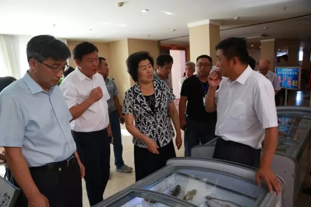 (中国水产流通与加工协会会长、国务院参事室特约研究员张玉香考察水产品展区)