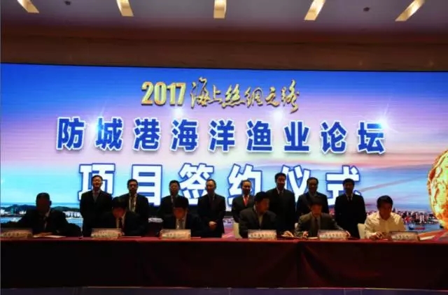 此前,防城港招商引资取得了很大成绩。广西防城港海世通食品有限公司董事长刘西磊分享了海世通在文莱进行渔业项目投资的经验和项目进展状况。在与会嘉宾的共同见证下,现场共有19个项目成功签约,其中,中国水产科学研究院黄海水产研究所、广西水产科学研究院分别和防城港市海洋渔业企业签约项目3个,东兴市签约项目5个,港口区签约项目5个,防城区签约项目6个,总投资额84.07亿元人民币。