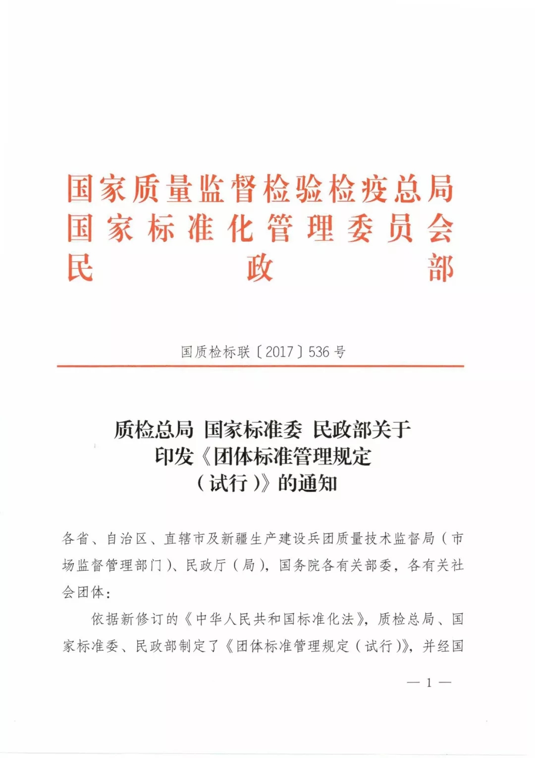 质检总局 国家标准委 民政部印发《团体标准管理规定(试行)》
