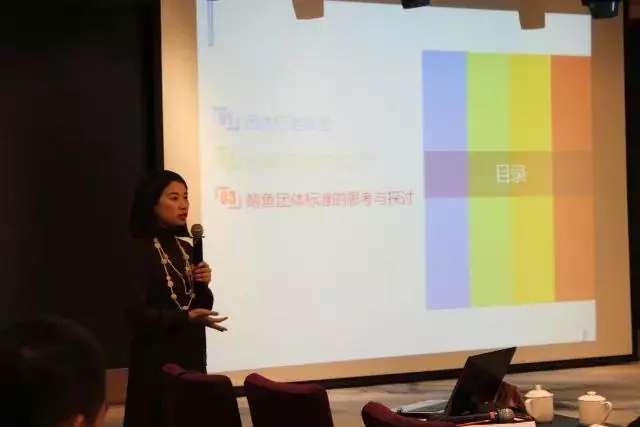 中国水产流通与加工协会展览交流部主任王晶在“团体标准讨论”报告上,阐述了“团体标准”的概念,介绍协会制定团体标准的工作,并发起了关于鲍鱼团体标准的思考与探讨。她指出,“团体标准”不同于之前标准的关键在于它强调产品的特点与创新,语言生动直观,真正站在消费者角度,接地气、切实际,是从“自上而下”到“自下而上”的一次跨越。团体标准不仅仅是制定一个标准而已,我们可以通过团体标准作为支点,创造中国自己的品牌。