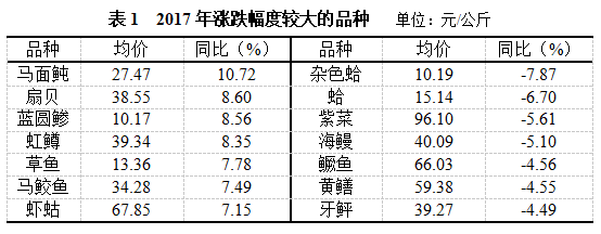 2017年海、淡水产品价格走势分化,这种价格变化的背后原因有所不同。