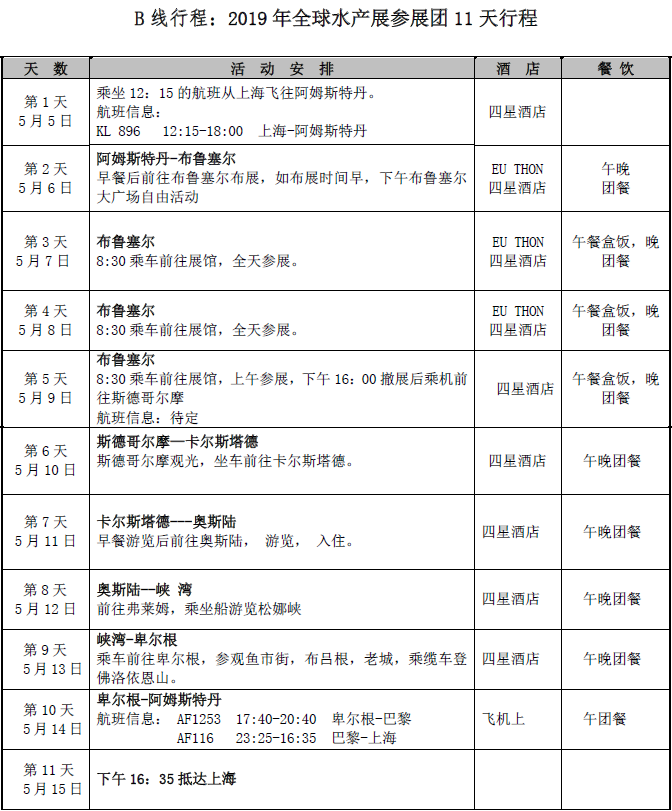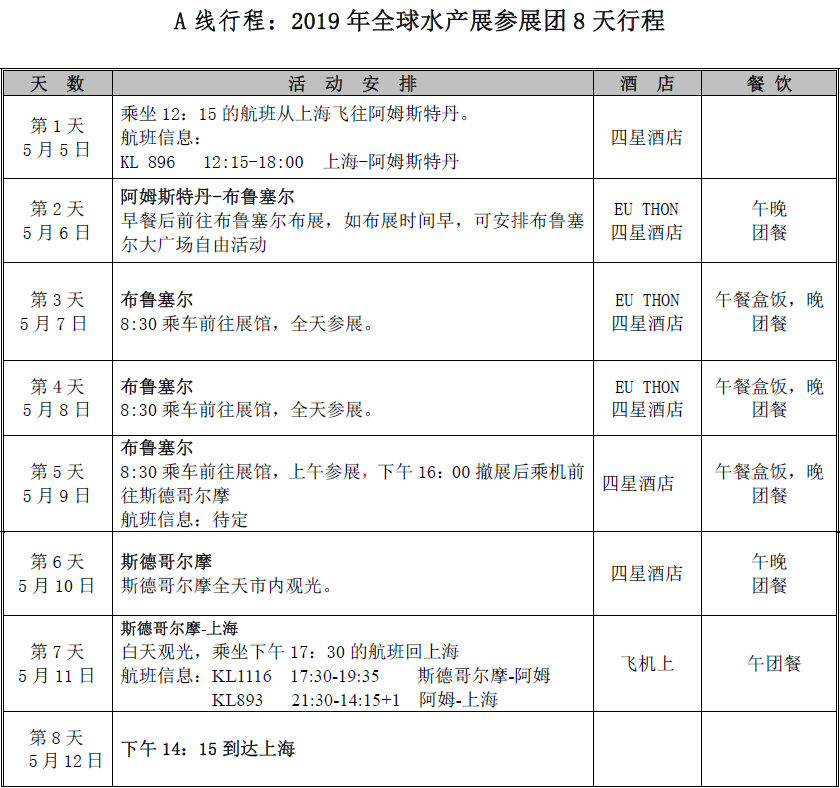 期待与你同行! 2019年全球水产品展览会团组行程定档!
