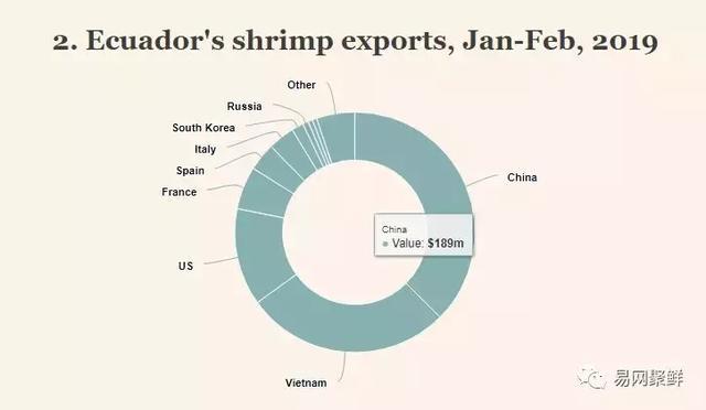 中国是厄瓜多尔白虾极为重要的消费市场,厄瓜多尔国家水产养殖协会(Camara Nacional de Acuacultura,简称CNA)最新贸易数据显示,2019年前两个月,这个南美国家向中国和越南出口了约5.7万吨虾,价值3.28亿美元。