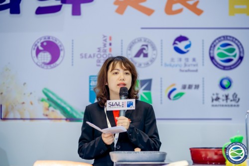 首日活动,谢少祯女士代表挪威海产局重点推荐了三款挪威代表性的水产品:三文鱼、鳕鱼以及青花鱼。