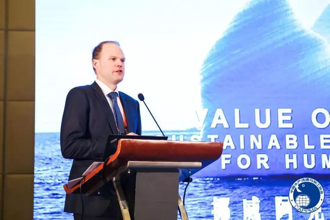 作为国际化发展公司的代表,挪威阿克海洋生物有限公司中国区总经理Andreas Thorud介绍了挪威阿克十多年来对南极磷虾供应链的不断优化历程,以及挪威阿克南极磷虾粉的品质及特点,并为大家展示了南极磷虾粉在鰤鱼、鲷鱼、三文鱼、对虾等生长中的应用和表现。他表示挪威阿克希望密切与中国市场合作,助力中国水产养殖业的可持续发展。