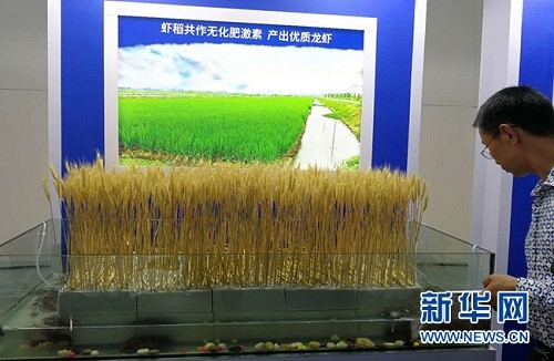 图为龙虾节现场,市民在观看虾稻生态种养模型。新华社记者罗鑫 摄