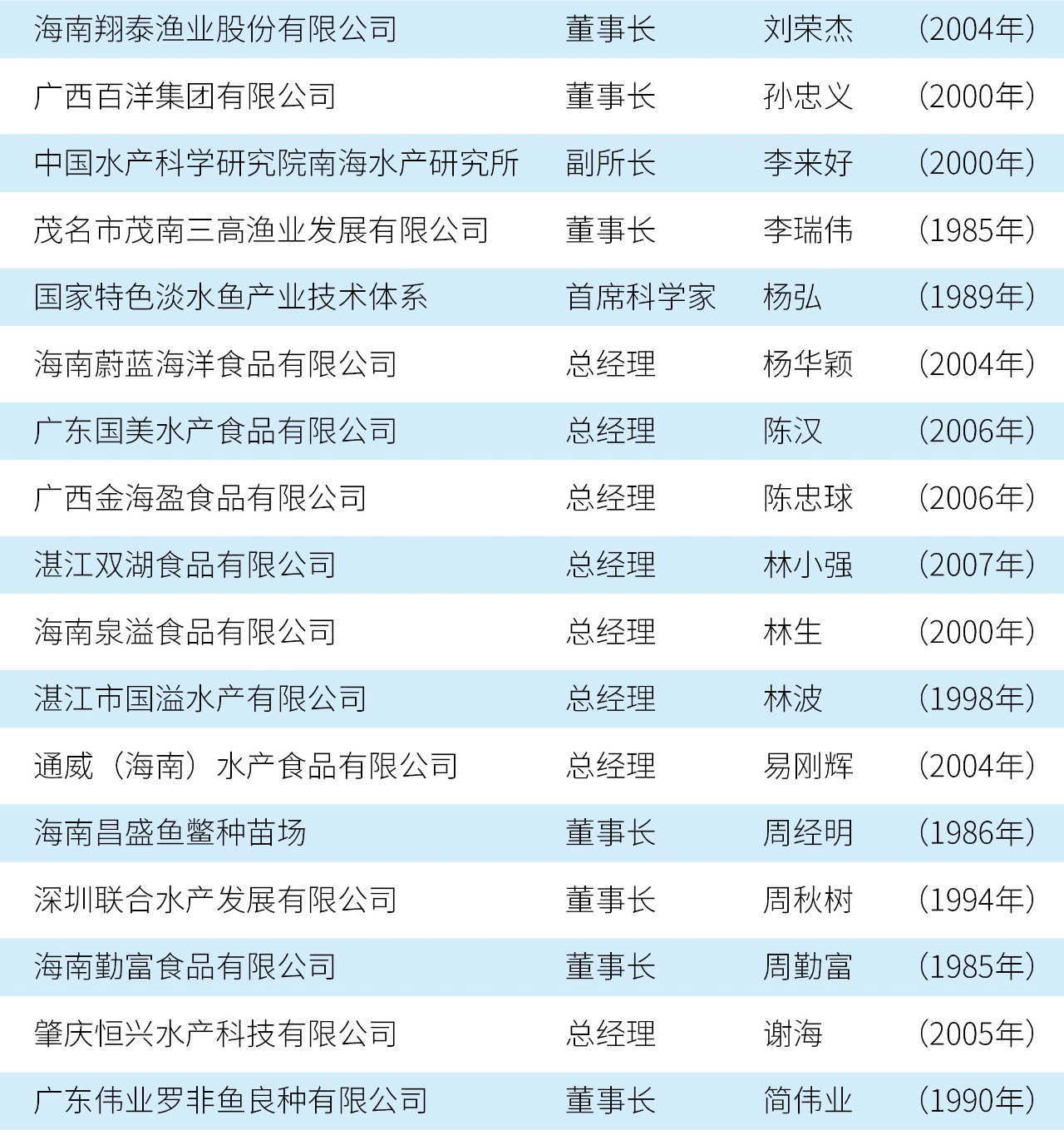获得“中国罗非鱼产业突出贡献人物”荣誉称号人员名单