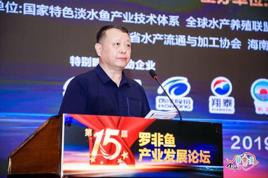 2019年6月17日,第十五届罗非鱼产业发展论坛在湛江皇冠假日酒店顺利开幕。本届论坛在农业农村部渔业渔政管理局、商务部外贸司农业处、广东省农业农村厅、广西壮族自治区农业农村厅共同指导下,由中国水产流通与加工协会主办,中国水产流通与加工协会罗非鱼分会承办,国家特色淡水鱼产业技术体系、全球水产养殖联盟(GAA)、出口产品内外销“同线同标同质”促进联盟、广东省水产流通与加工协会、海南省水产流通与加工协会、海南智渔可持续科技发展研究中心、湛江水产流通与加工协会等单位共同协办的中国罗非鱼产业高层次专业论坛,是中国罗非鱼行业的年度盛事。商务部外贸司农产品处副处长罗林泉,农业农村部农业贸易促进中心贸易救济处处长张军平,国家特色淡水鱼产业技术体系首席科学家杨弘,中国水产科学研究院南海水产研究所副所长李来好,广西壮族自治区农业农村厅副厅长梁雄,广东省农业农村厅渔业资源保护处处长刘炜,广东省湛江市人民政府副秘书长刘兵,海南省文昌市人民政府副市长符策万,中国检验检疫协会、出口产品内外销“同线同标同质”促进协会秘书长郭京,上海海洋大学教授李思发,全球水产养殖联盟(GAA)主席乔治•张伯伦(George Chamberlain)博士,中国水产流通与加工协会会长崔和等相关领导出席了此次论坛。