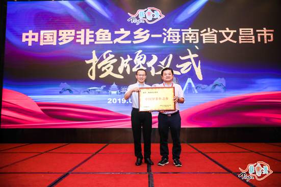 文昌市副市长符策万接受“中国罗非鱼之乡”牌匾