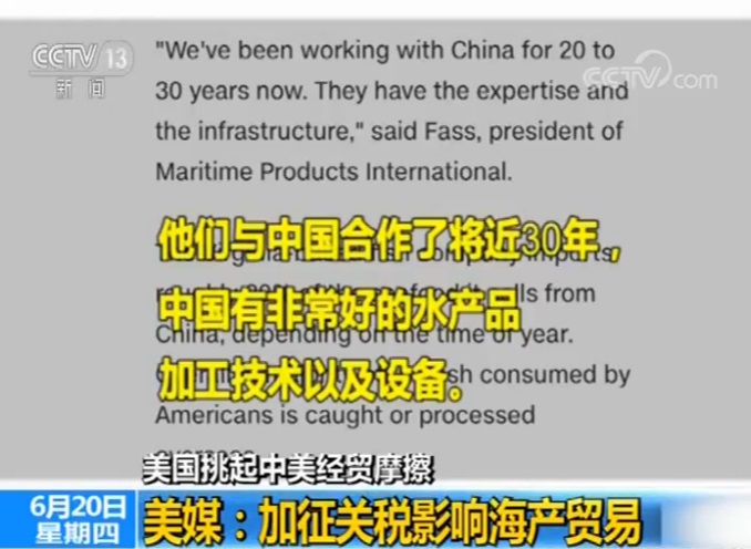 美媒:中国水产加工技术全球领先 美海产企业呼吁不要对华加征关税