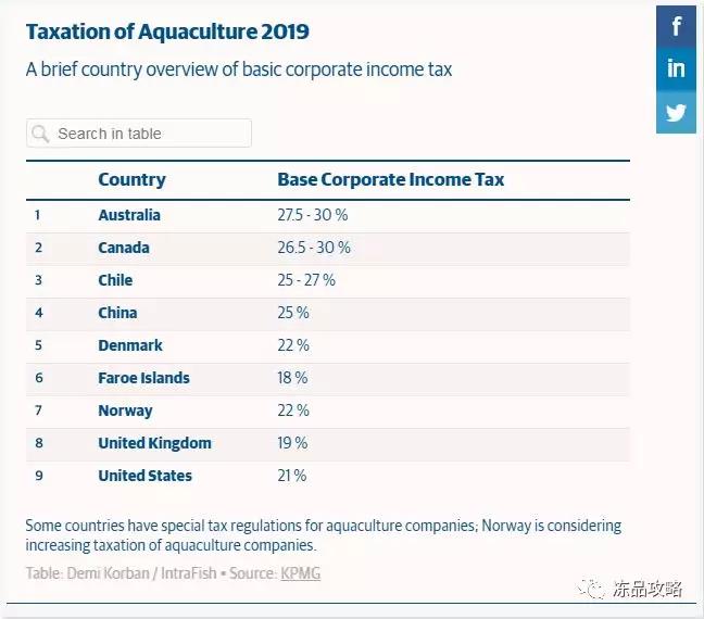 美国的水产养殖公司按21%的普通企业税率征税。