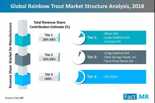 大型生产商,如Mowi、Cermaq、Leroy和Grieg Seafood等公司,都在不断强化对虹鳟养殖产业的战略收购。而对于小型虹鳟企业来说,践行产品多样化生产将成为未来重要的市场战略。越来越多的行业参与者对各种虹鳟产品进行间接分销,提升产品的销售额和附加值。