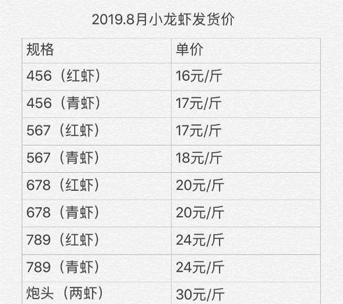 湖北小龙虾养殖户胡师傅提供的8月9日小龙虾供货价。受访者供图