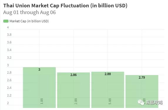 与此同时,泰国海产品生产商Thai Union的股票在8月1日至6日也下降了7%,至28亿美元。(出处:冻品攻略)