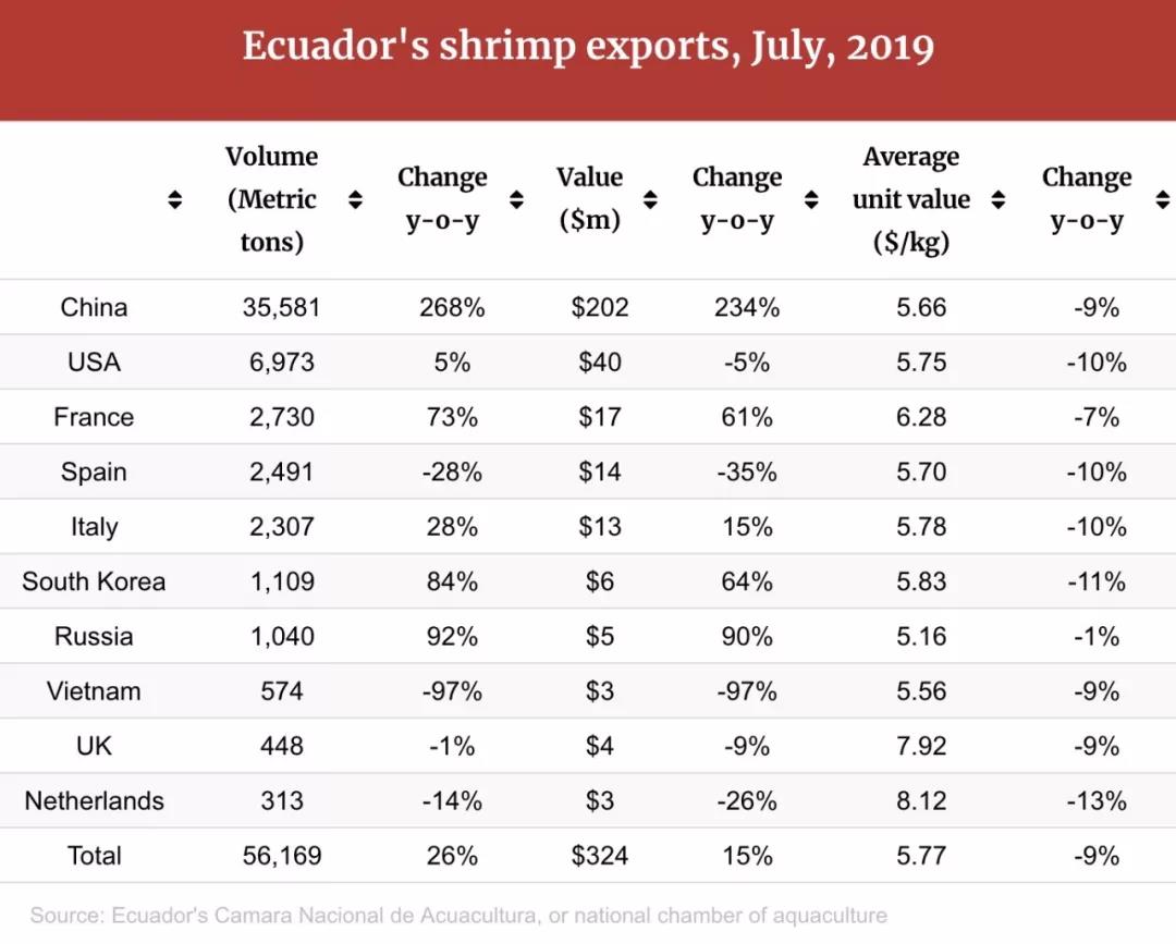 边贸进口减至574吨,七月份厄瓜多尔白虾正关销量再破纪录!