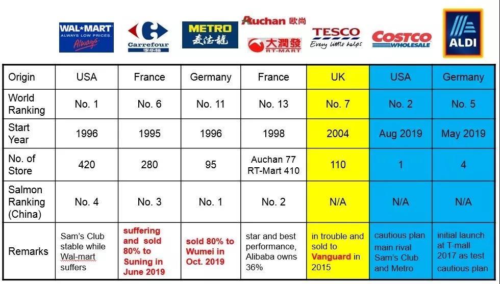 自上世纪90年代开始,大批外国零售企业就纷纷投资中国,沃尔玛、山姆会员店、家乐福、麦德龙、Tesco、Costco、Aldi等商超门店开设在北上广深等一线城市和二三线城市,有的企业将分支延伸到三四线城市。
