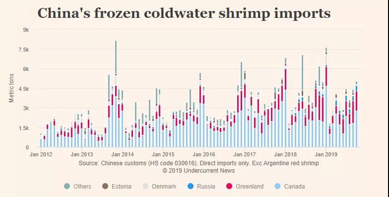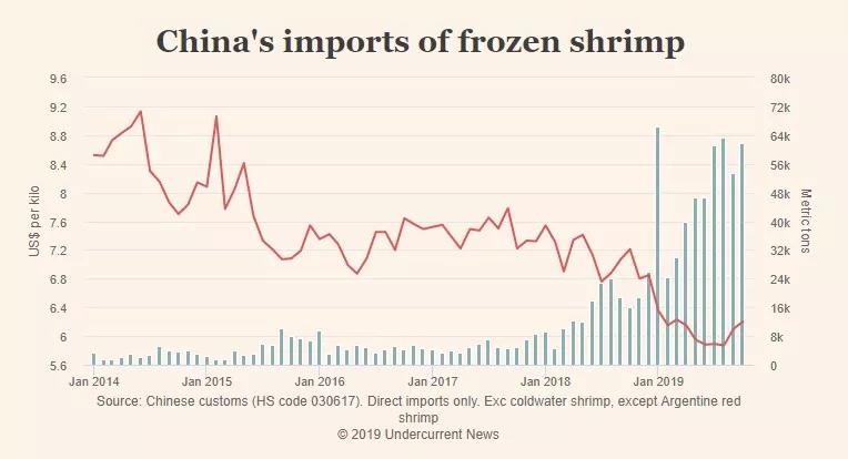 一般来说,每年的十月、十一月和十二月美国虾类进口量呈现较大增幅。2019年全年中国虾产品进口数量能否最终超越美国,还有待观察。