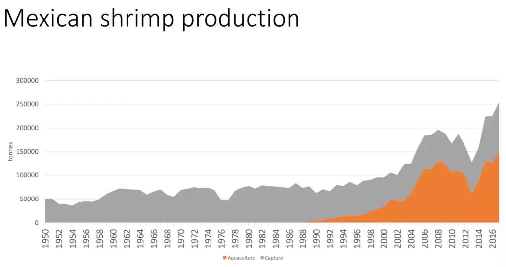 “经历多年病害后,墨西哥养殖虾产量回归至14万吨,野生虾产量维持在8万吨。墨西哥从厄瓜多尔进口廉价的白虾,再将高价的野生虾出口到其他国家,主要是日本。现在,墨西哥已是一个净出口国。”Josupeit说。