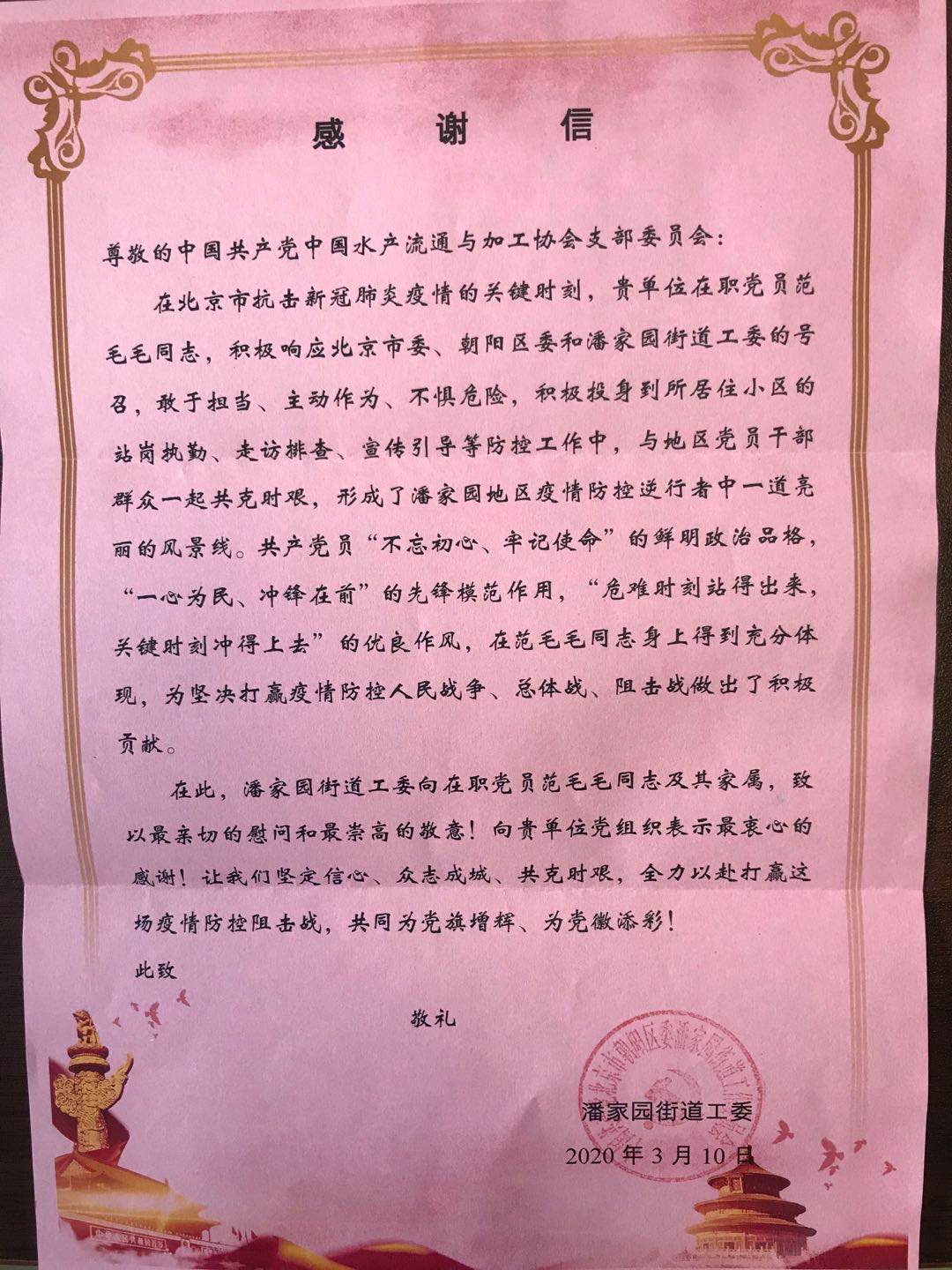 在新冠肺炎疫情形势严峻时刻,我会党支部制发了《中国水产流通与加工协会秘书处全体党员倡议书》,提出防控疫情, 党员先行的口号,倡议全体党员要充分发挥先锋模范作用,坚决打赢这场疫情防控阻击战。