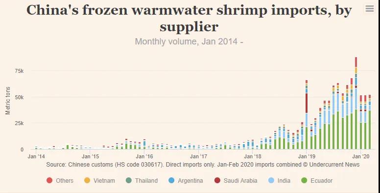 三月份厄瓜多尔白虾进口量大幅增长,印度虾减少
