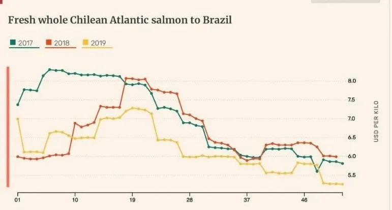 智利三文鱼对华出口价格上涨0.29美元!美国,巴西现货价格下跌!